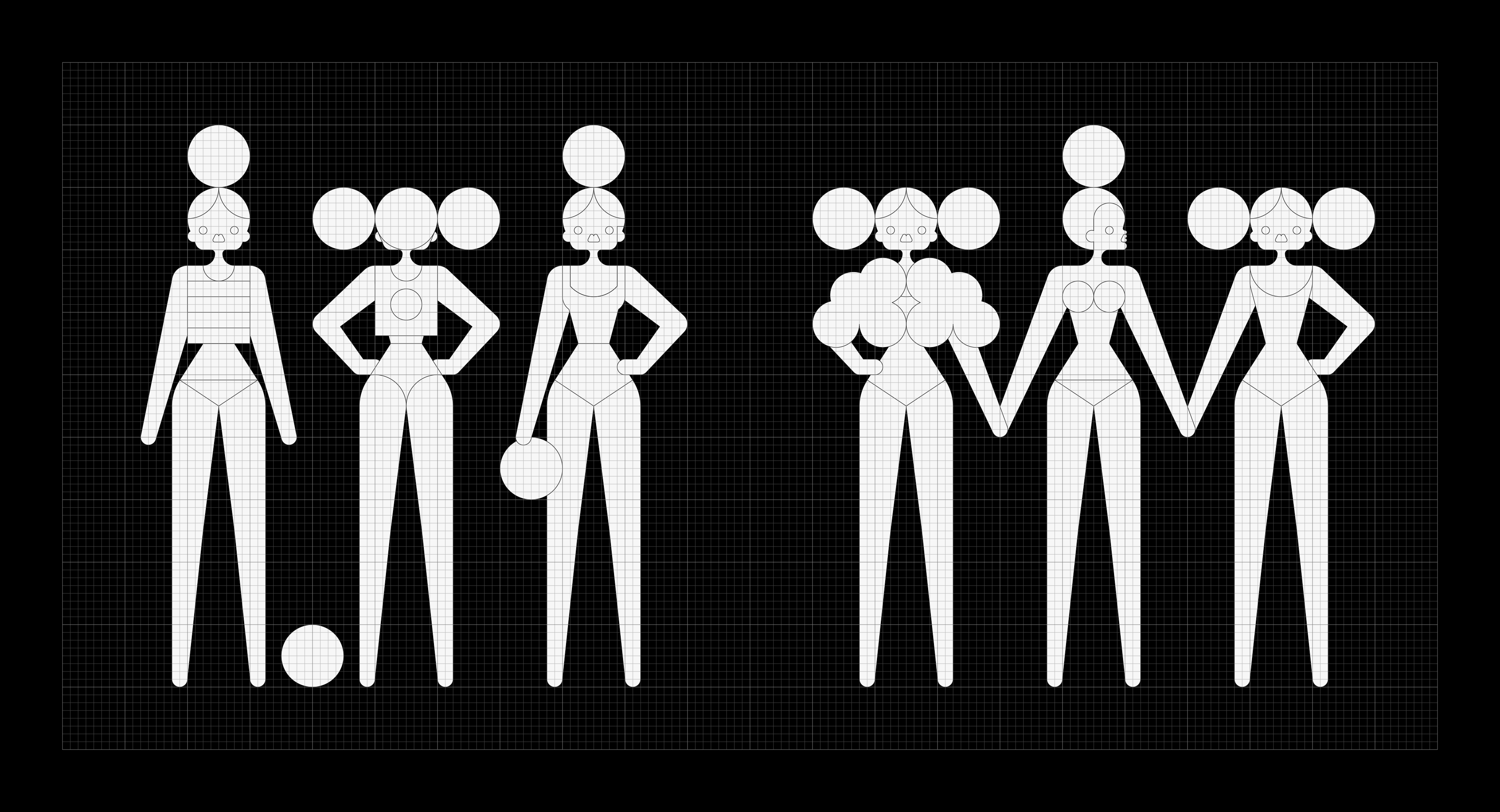Grid girl is an ongoing personal project, which started with the aim of developing a grid-based, character design system. It explores the human body as a grid-based object, constructed from basic geometric shapes, and predefined set of rules. The proportions of the body are based on a head to body ratio of 1:8. In the structure of the head, the eyes are enlarged and placed well below the equator, resulting in a super-youthful appearance. |