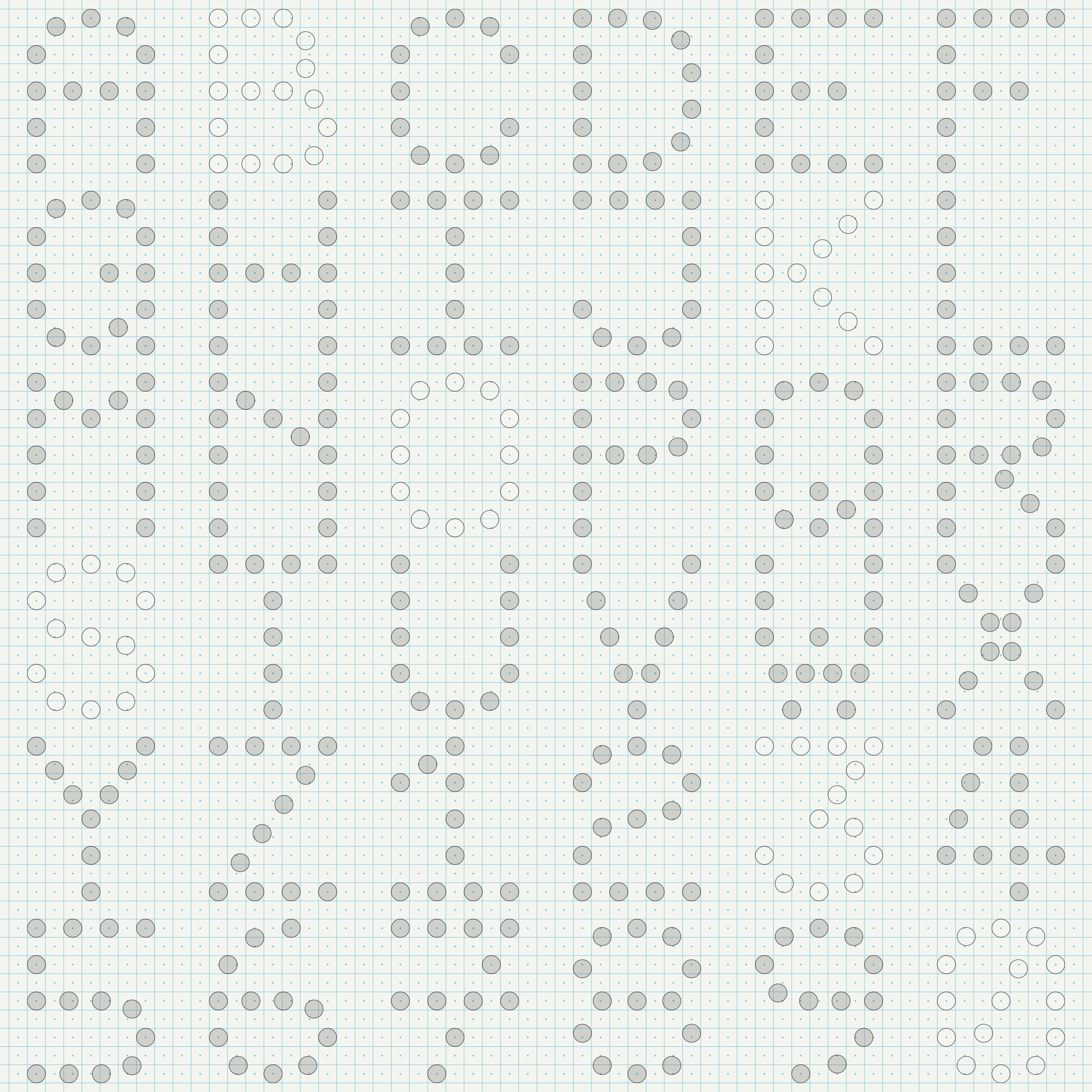 A modular typeface based on a grid of 3:4 units. The design combines the strict monotonous rigidity of grid based, geometric shapes with unconventional typographic proportions, that are inspired by a child's head (which compared to an adult head is relatively large for its body). The typographic anatomy features minuscule counters and eyes that are placed dead-centre of the x-height, giving the typeface its characteristic bobblehead look. |