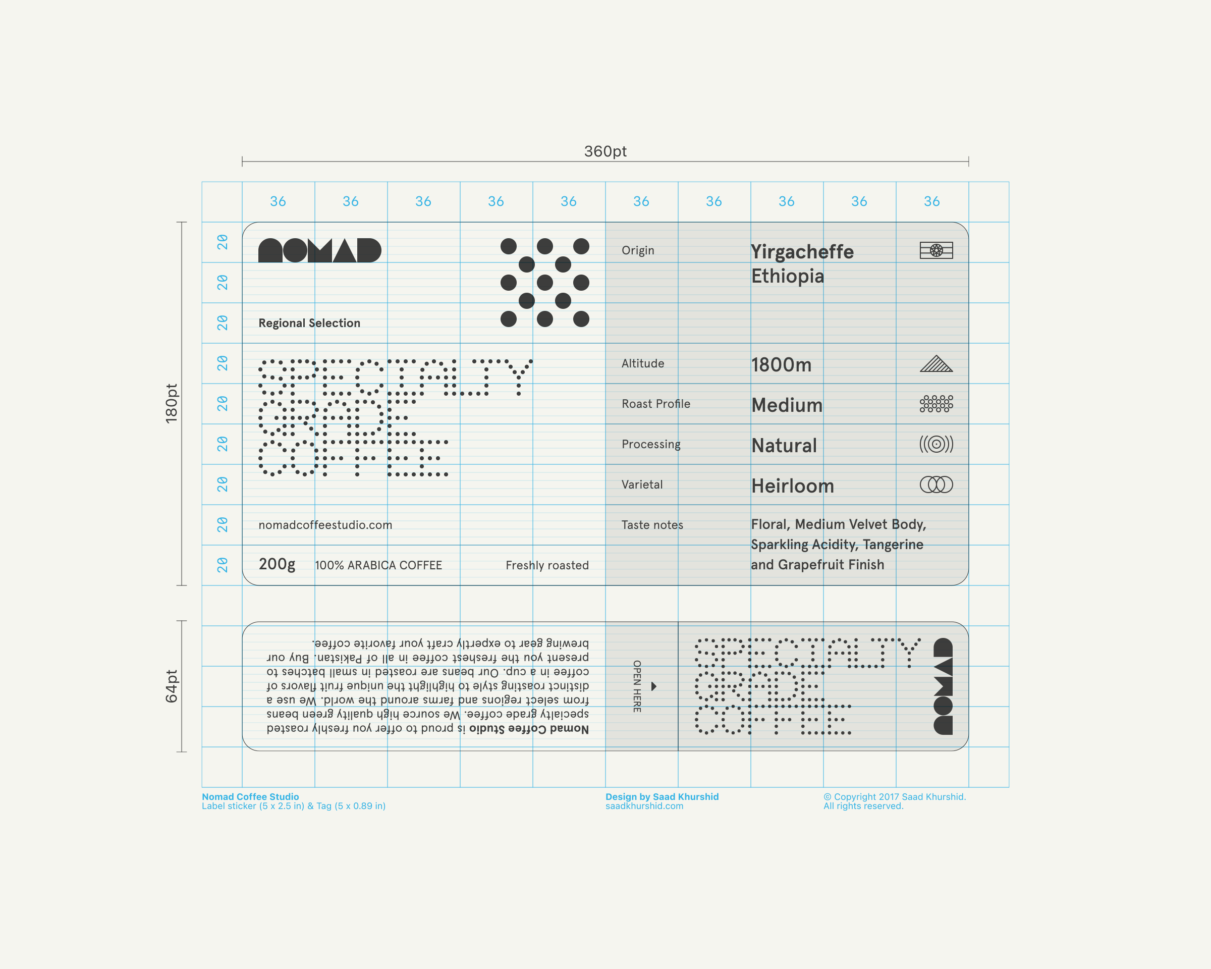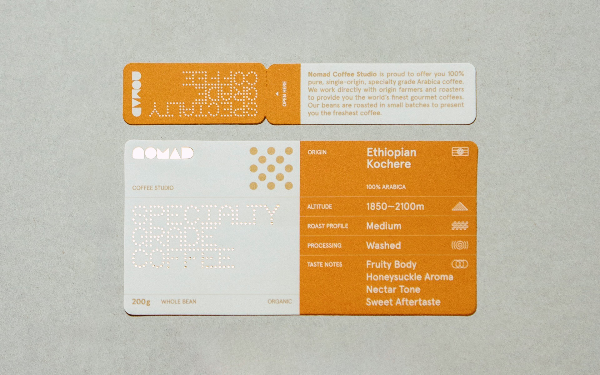 Sticker label for Nomad Coffee Studio's coffee bags. |