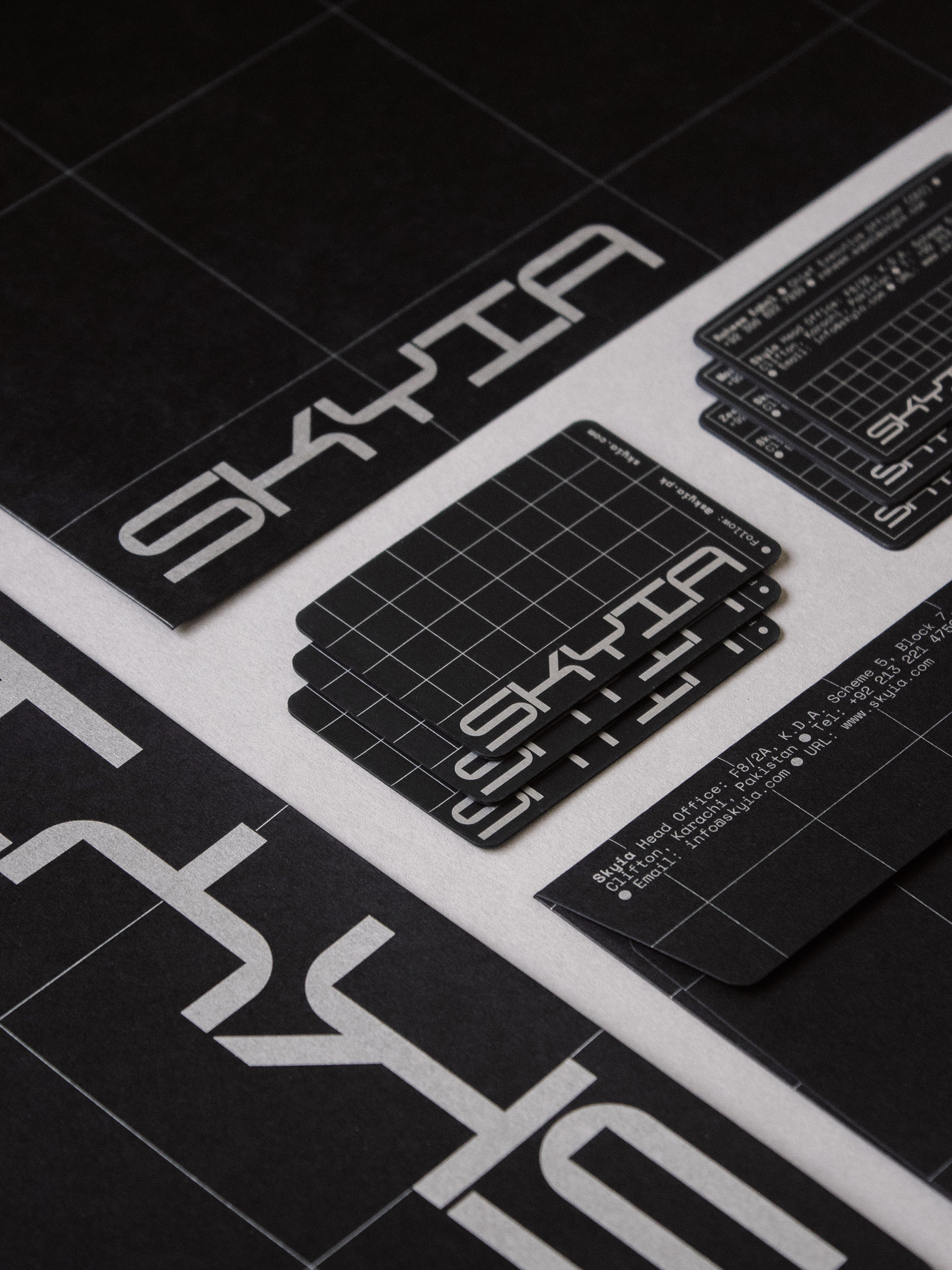 Designed the identity for a home automation company, which included a futuristic, extended width typeface. In the identity, grids are used as a design element. The complexity of the grid patterns increases in an exponential sequence: 4x4, 8x8, 16x16. The three set of grid patterns represent the three eras of technology— Analog → Digital → A.I. |